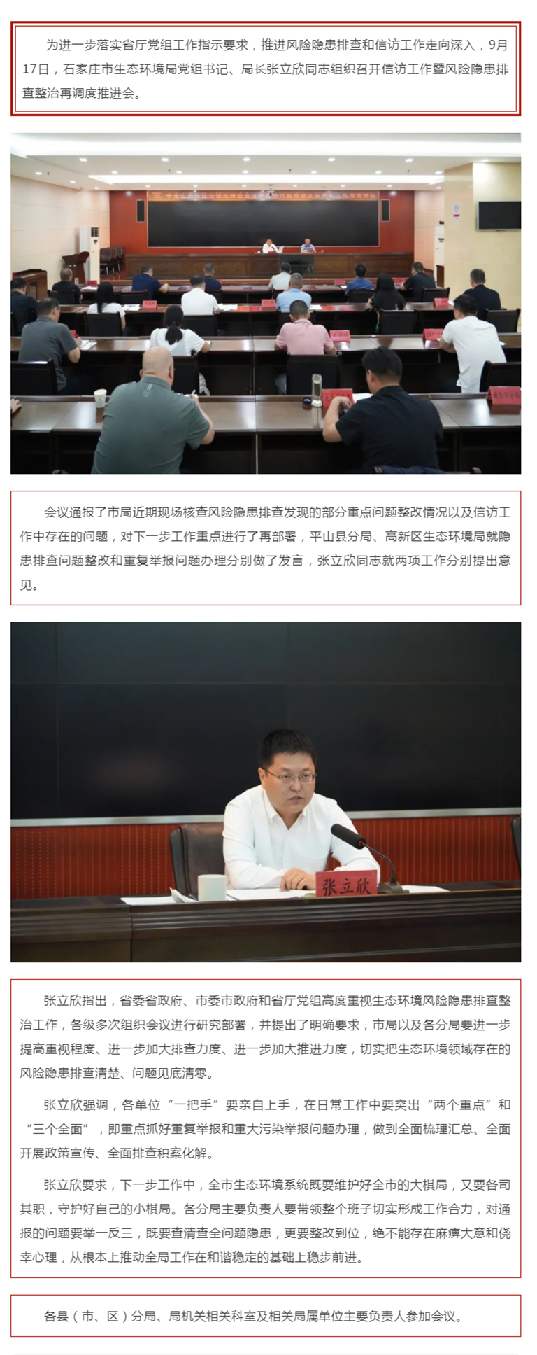 石家庄市生态环境局召开信访工作暨风险隐患排查整治再调度推进会