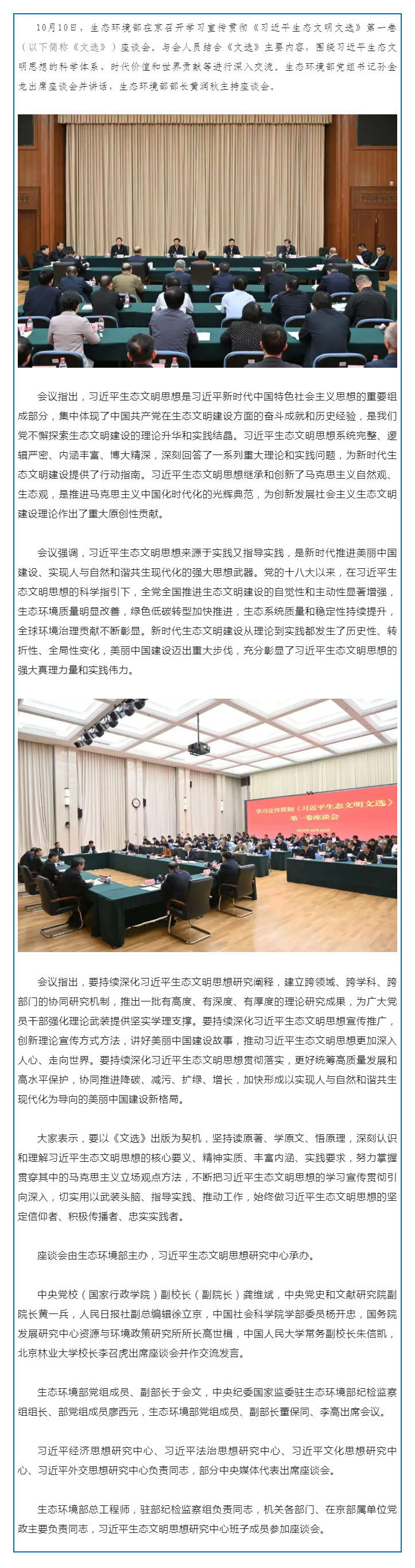生态环境部召开学习宣传贯彻《习近平生态文明文选》第一卷座谈会