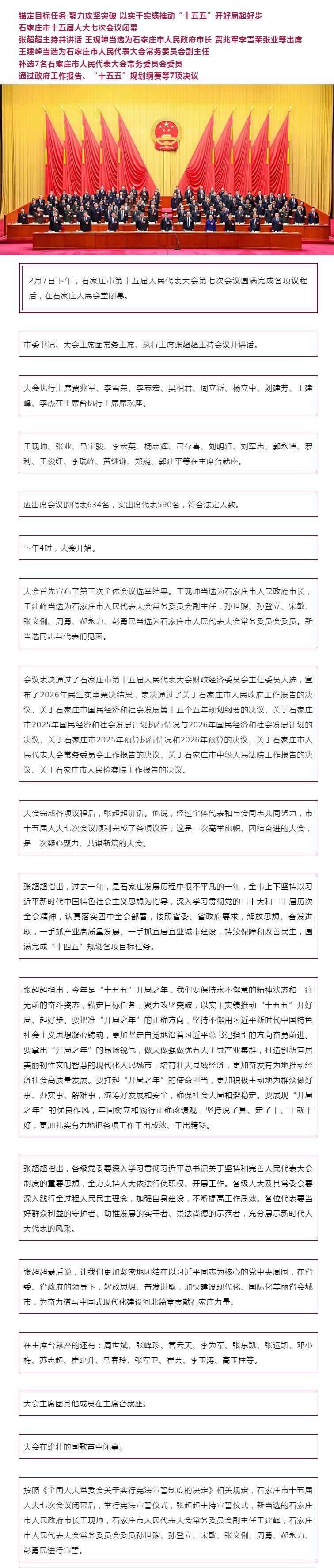 石家庄市十五届人大七次会议闭幕