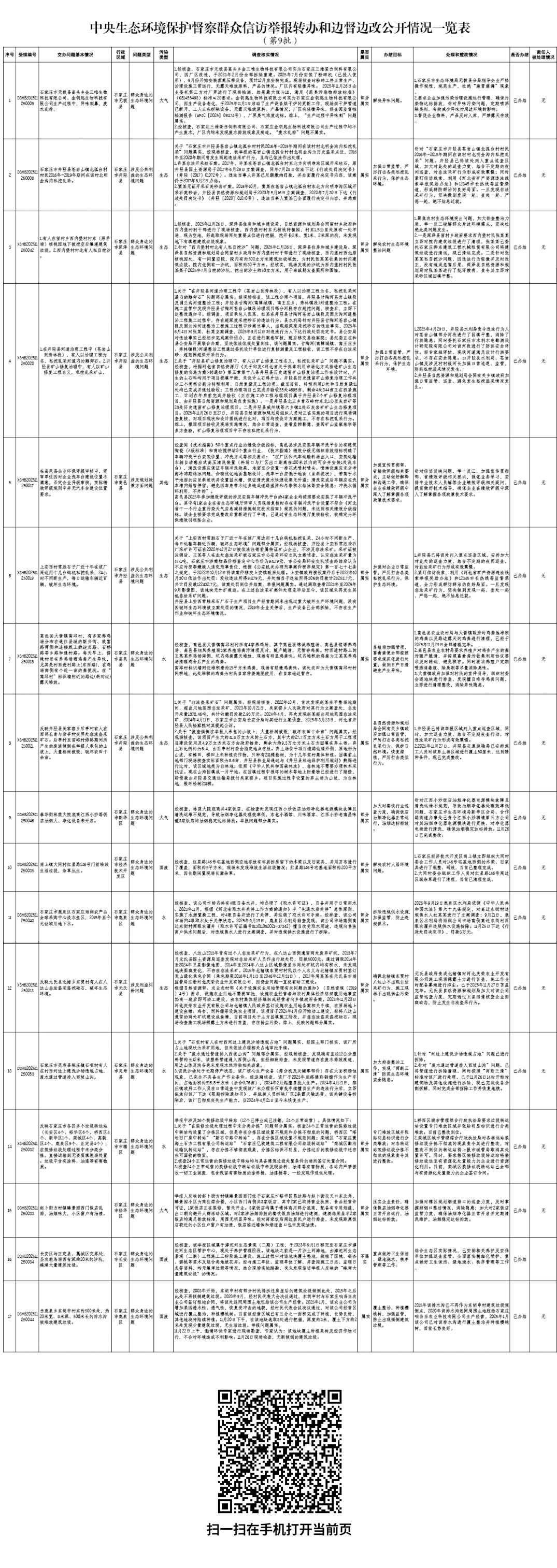 附件:中央生态环境保护督察群众信访举报转办和边督边改公开情况一览表(第9批)