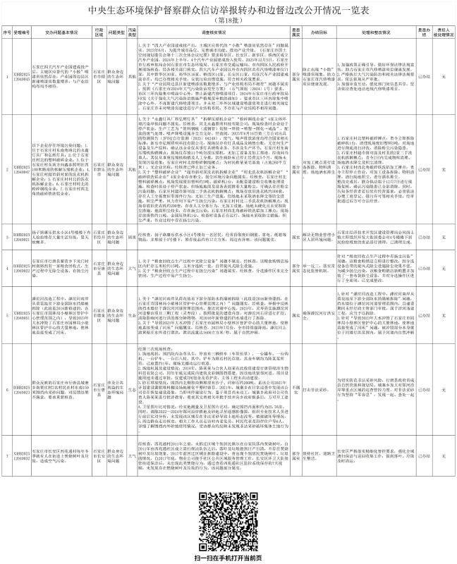 附件:中央生态环境保护督察群众信访举报转办和边督边改公开情况一览表(第18批)