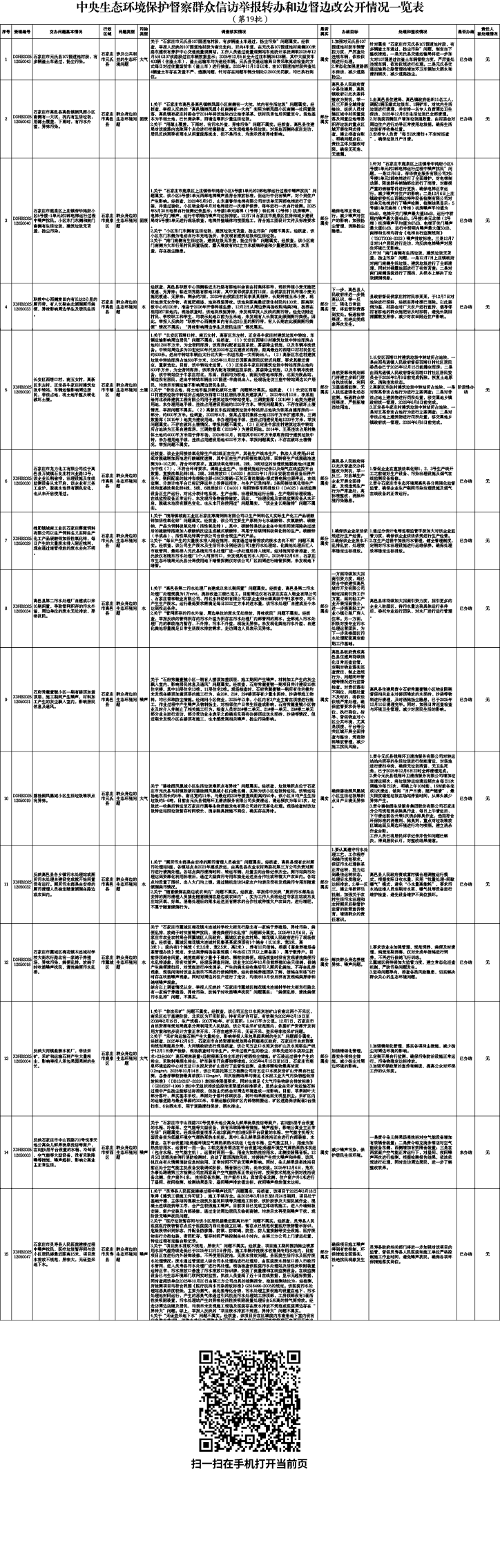 附件:中央生态环境保护督察群众信访举报转办和边督边改公开情况一览表(第19批)