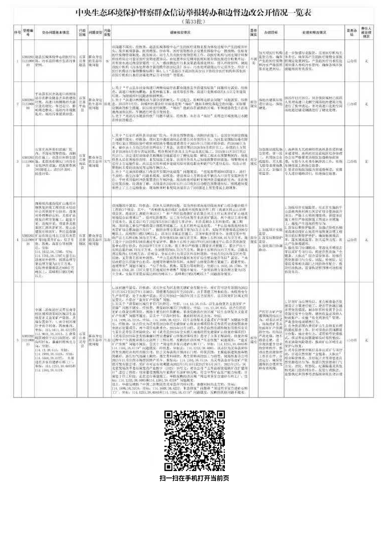 附件:中央生态环境保护督察群众信访举报转办和边督边改公开情况一览表(第33批)